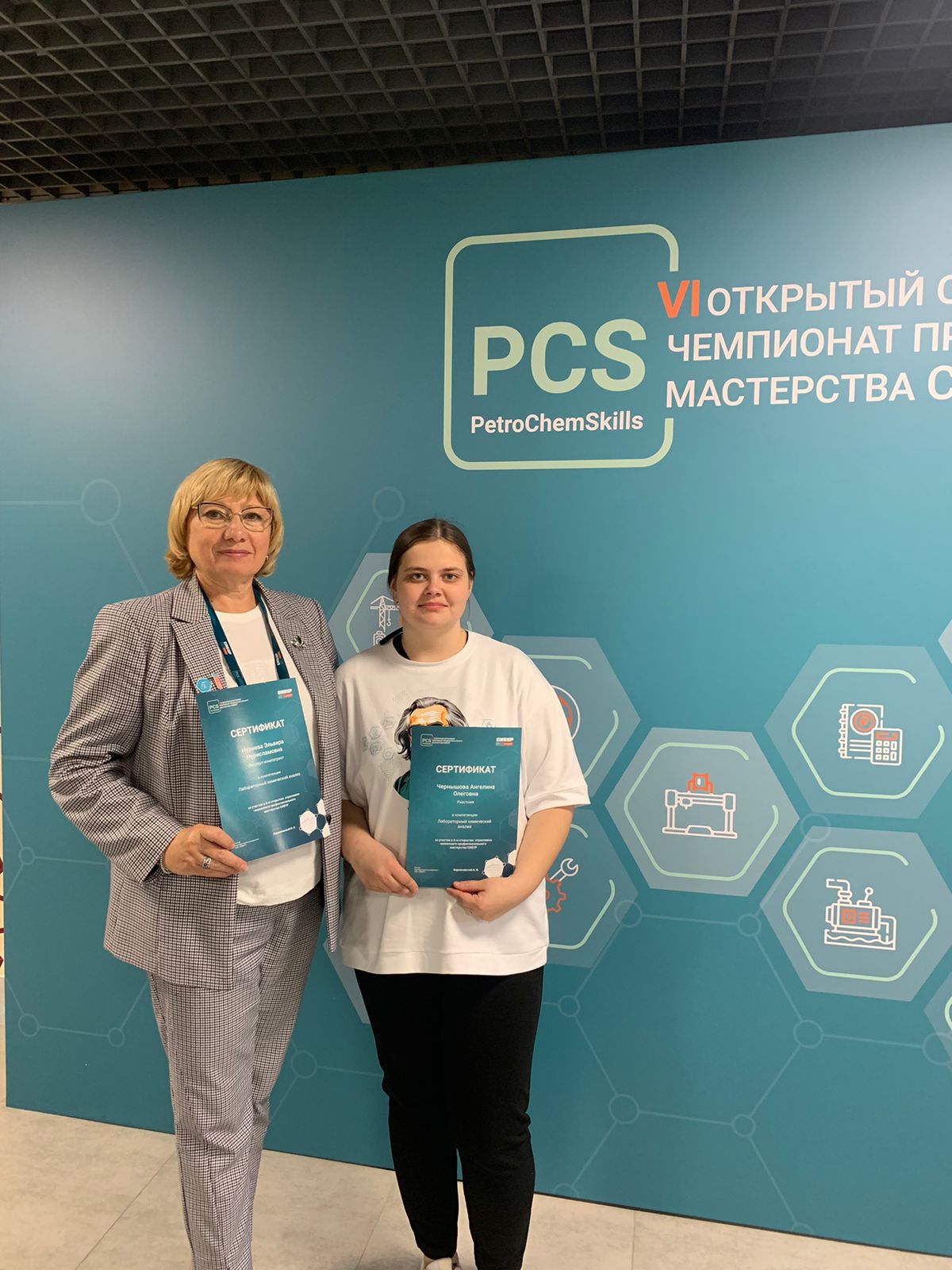 В компетенции Лабораторный химический анализ III место в категории «Студенты» заняла студентка группы 1231-21 Чернышова А.О. Сопровождающим экспертом в данной компетенции выступила доцент кафедры НХС Нуриева Э.Н., консультантом и наставником Ангелины была доцент кафедры НХС Кожевникова И.В.