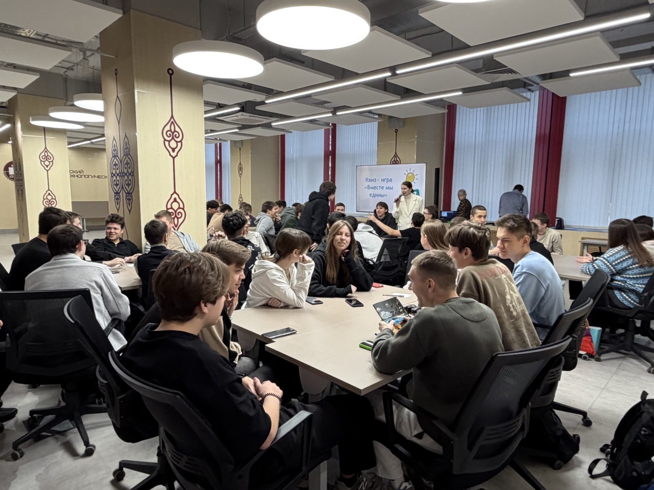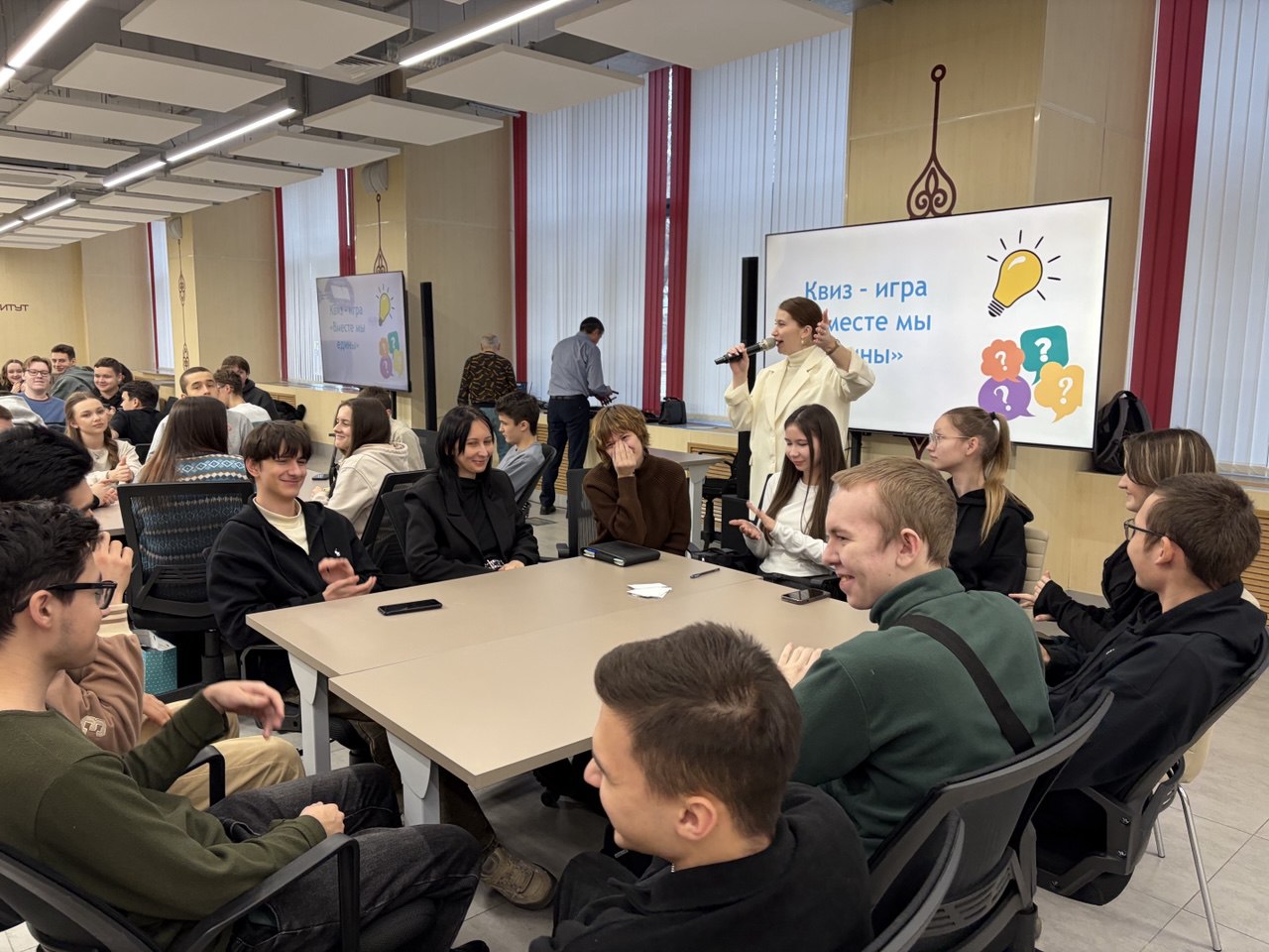 Также для ребят спикер Шайхутдинова Диана Ильдусовна — специалист по работе со студенческой молодежью провела КВИЗ-ИГРУ «Вместе мы едины».