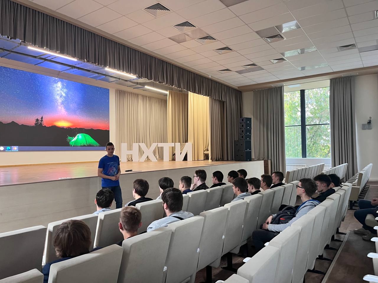 Аудитория с первых минут ощутила невероятную харизму Рустема. Он делился живой историей своего пути, который начался здесь, в НХТИ: